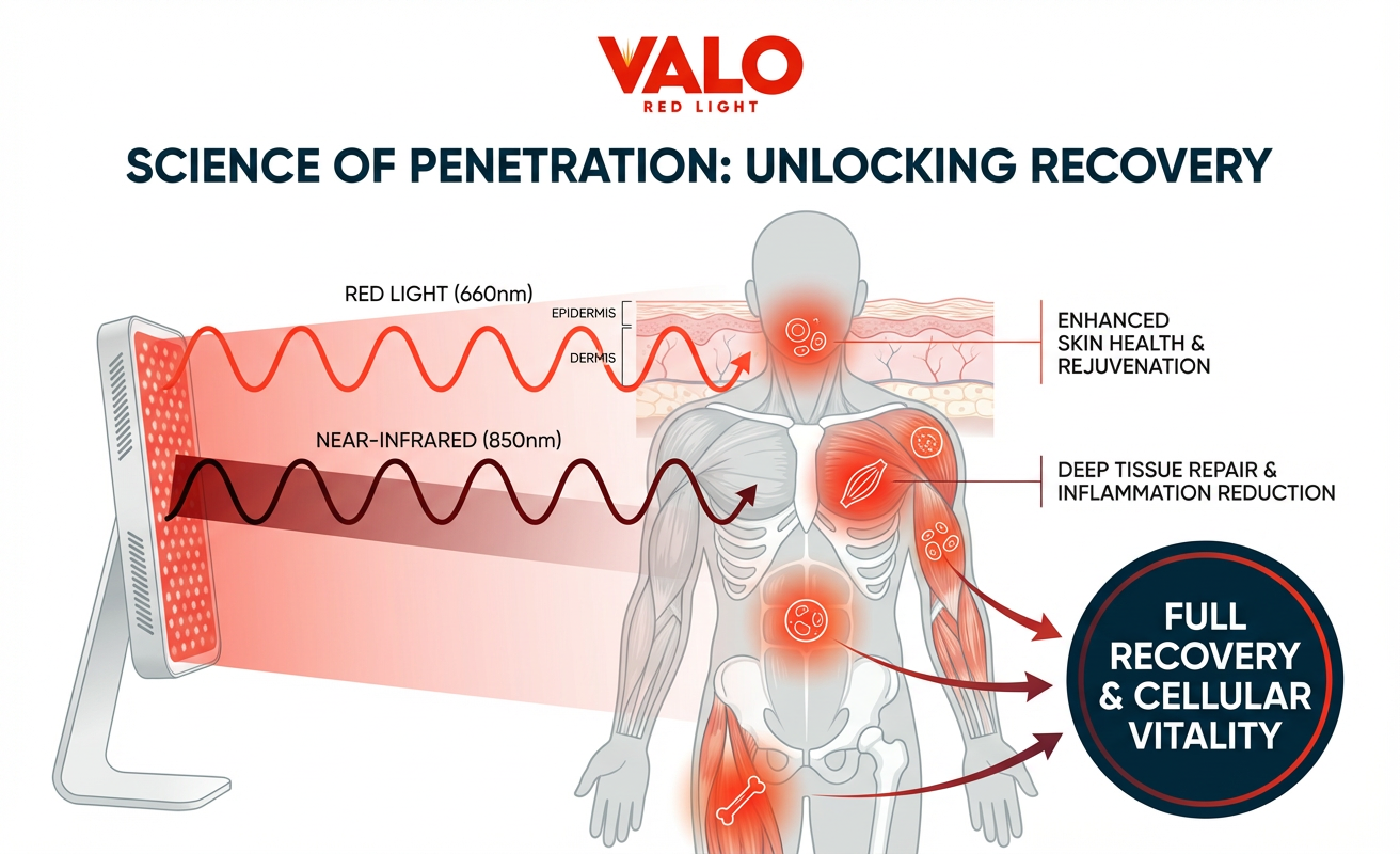Every Valo device delivers both 660nm red light (for superficial tissue, skin, and inflammation) and 850nm near-infrared light (for deep muscle, joint, bone, and nerve tissue). This is the exact wavelength combination used in the majority of positive clinical studies.